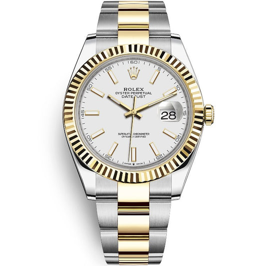 Movement: Officially certified chronometer self-winding movement.Jewels: 31Caliber: 3235Case: Stainless steel case 36.0 mm in diameter. Rolex logo on a crown.Bezel: 18K white gold fluted bezel.Crystal: Scratch resistant sapphire crystal with cyclops magnifier.Dial: White dial with raised roman...- $11,730.00