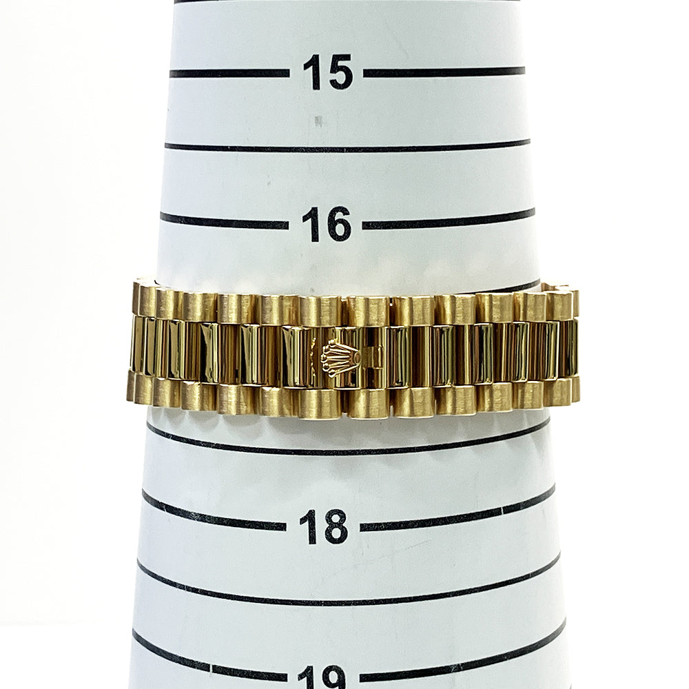 Bracelet: 18k yellow gold President bracelet. Fits a 7" wrist.