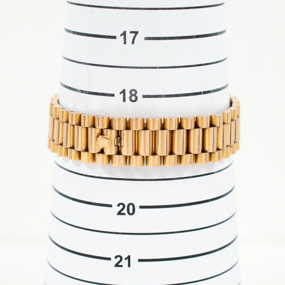 Bracelet: 18K Everose rose gold president bracelet with a hidden clasp. Fits up to a 7 1/4" wrist.