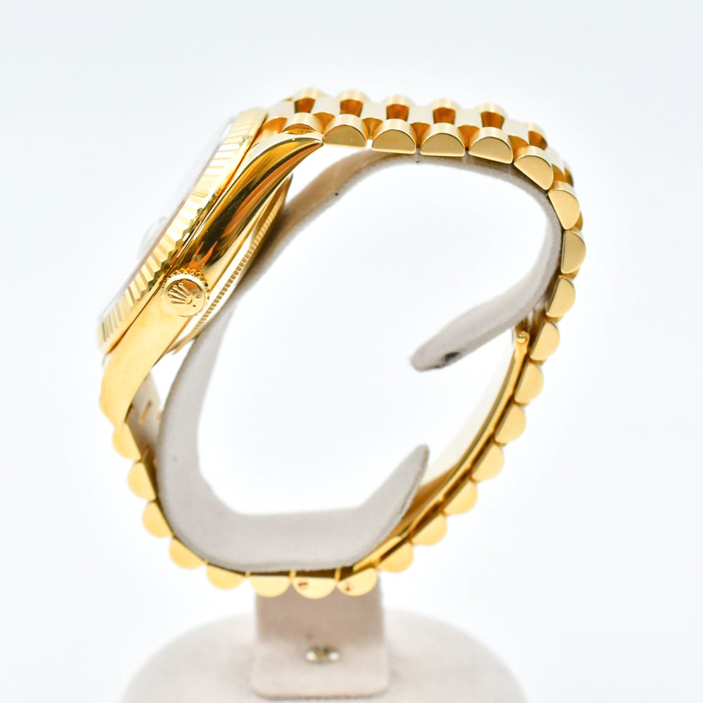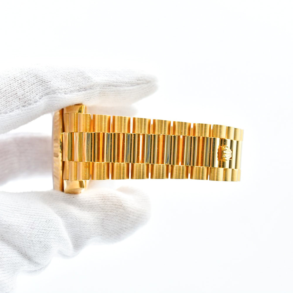 Bracelet: 18k yellow gold President bracelet with hidden clasp. Fits 7 3/4" wrist.