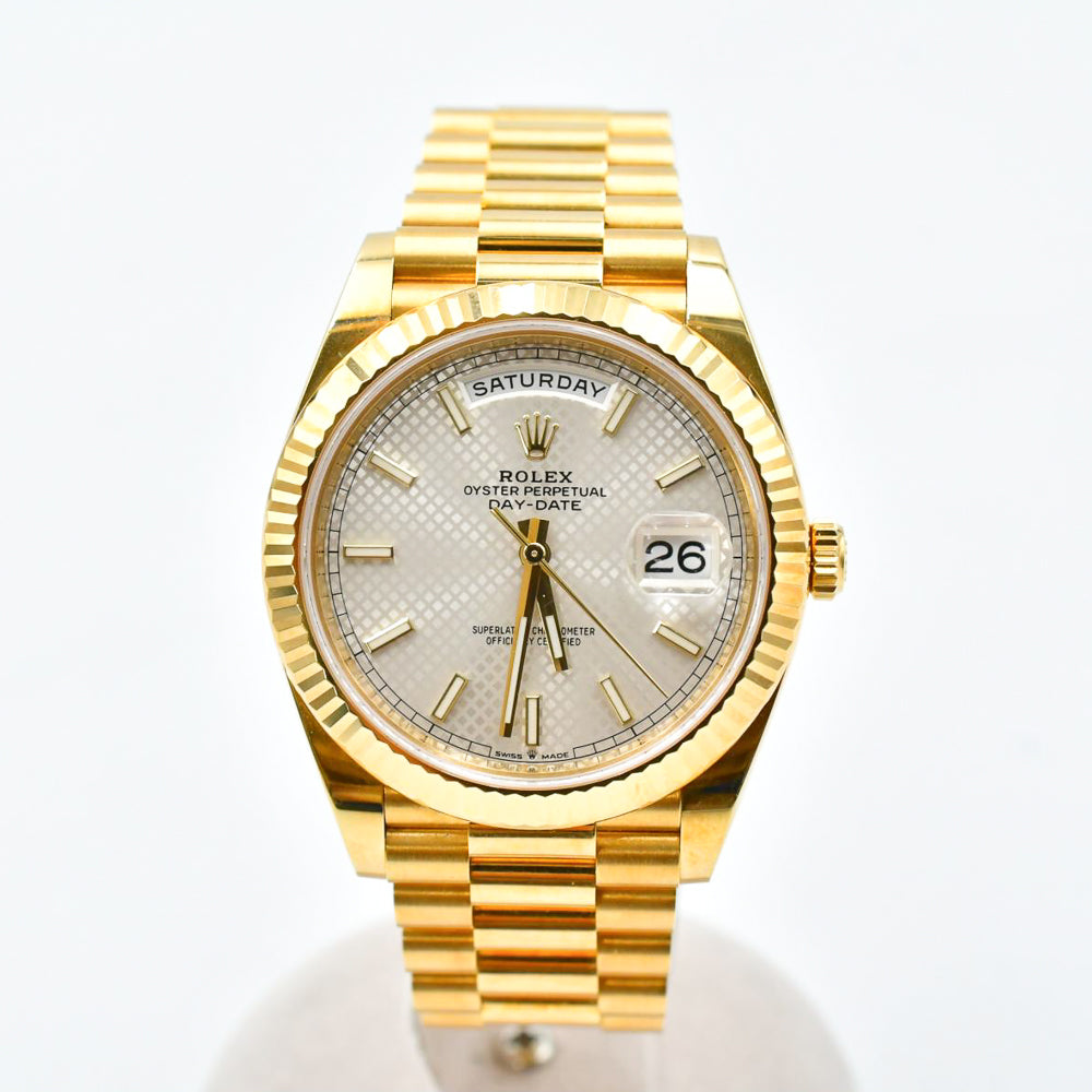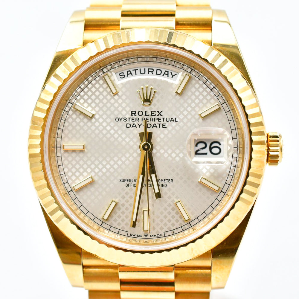 Case: 18k yellow gold oyster case 40.0 mm in diameter. Rolex logo on the crown.