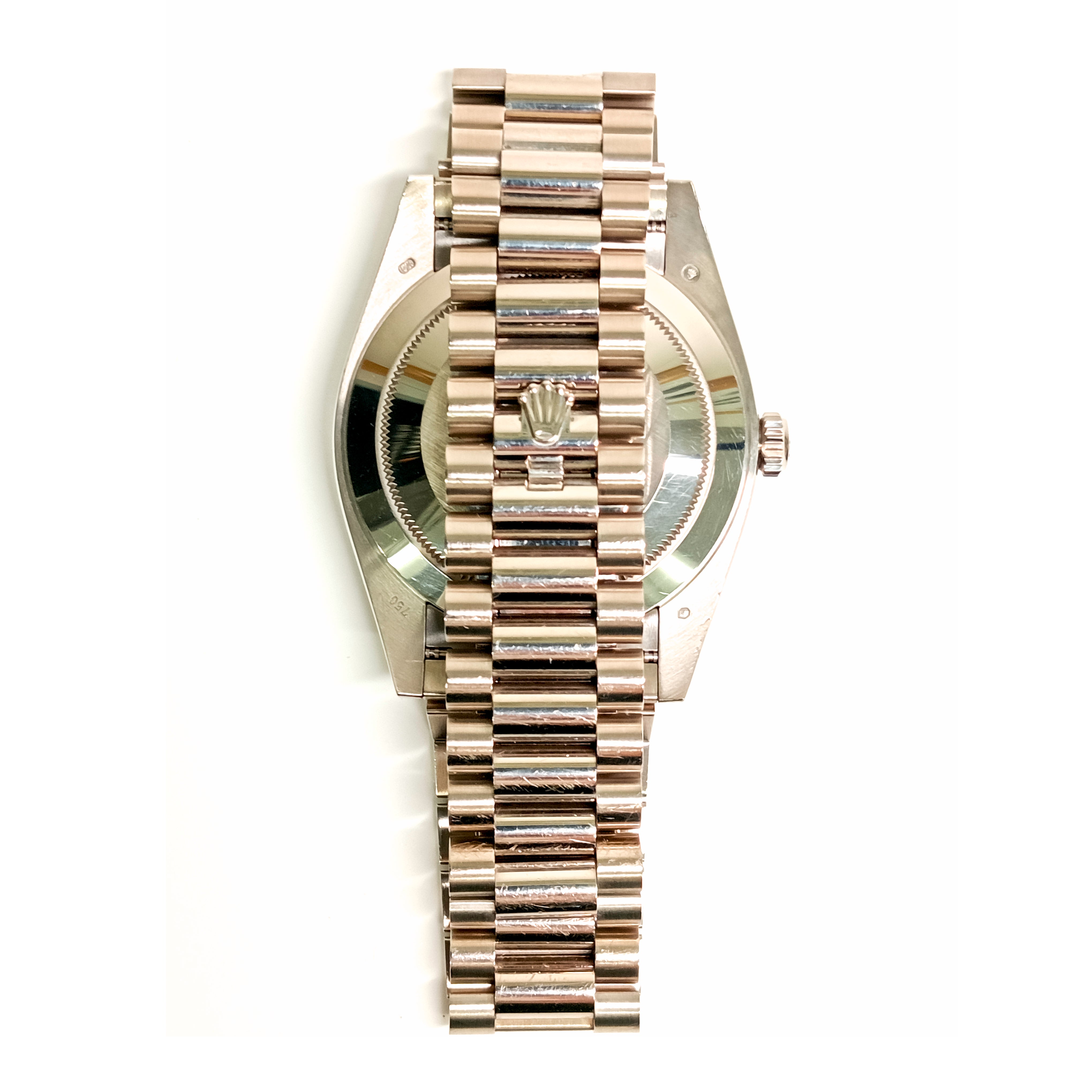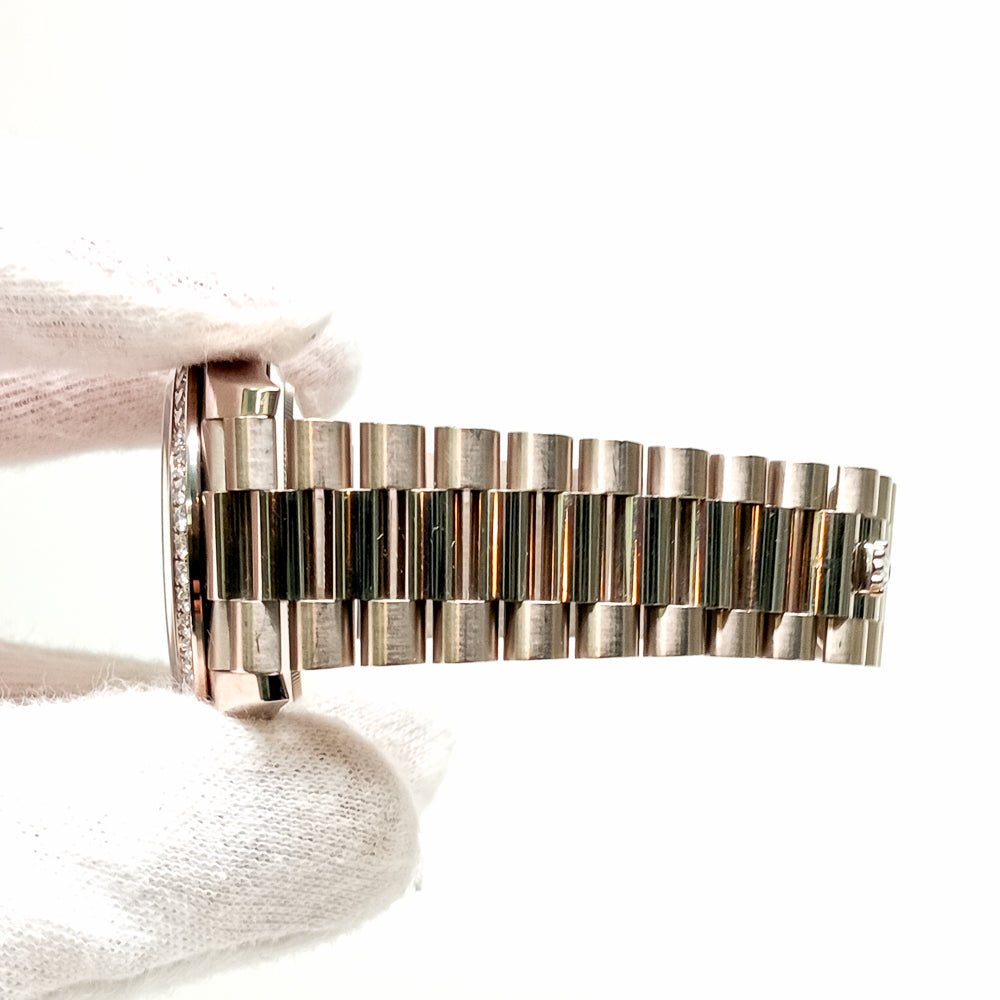 Bezel: 18K white gold original Rolex factory diamond bezel.