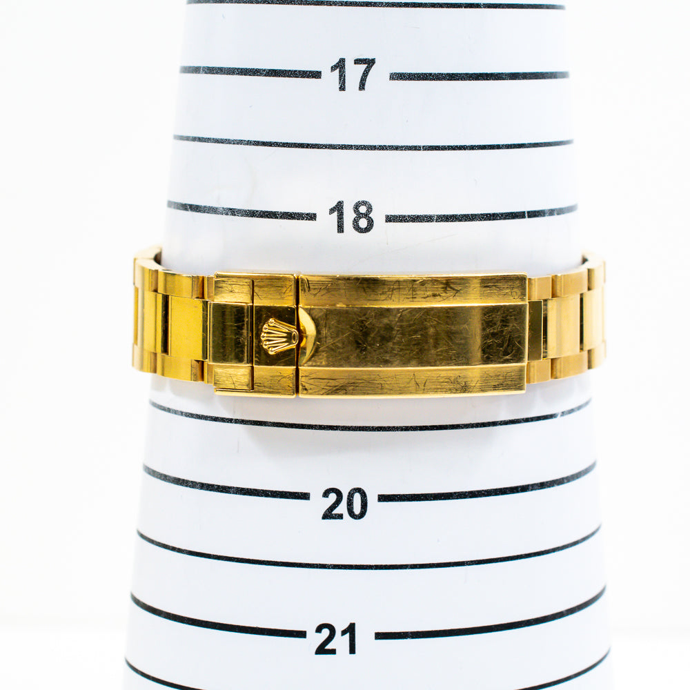 Bracelet: 18K yellow gold oyster bracelet with a flip-lock clasp. Fits up to a 7 3/4" wrist.
