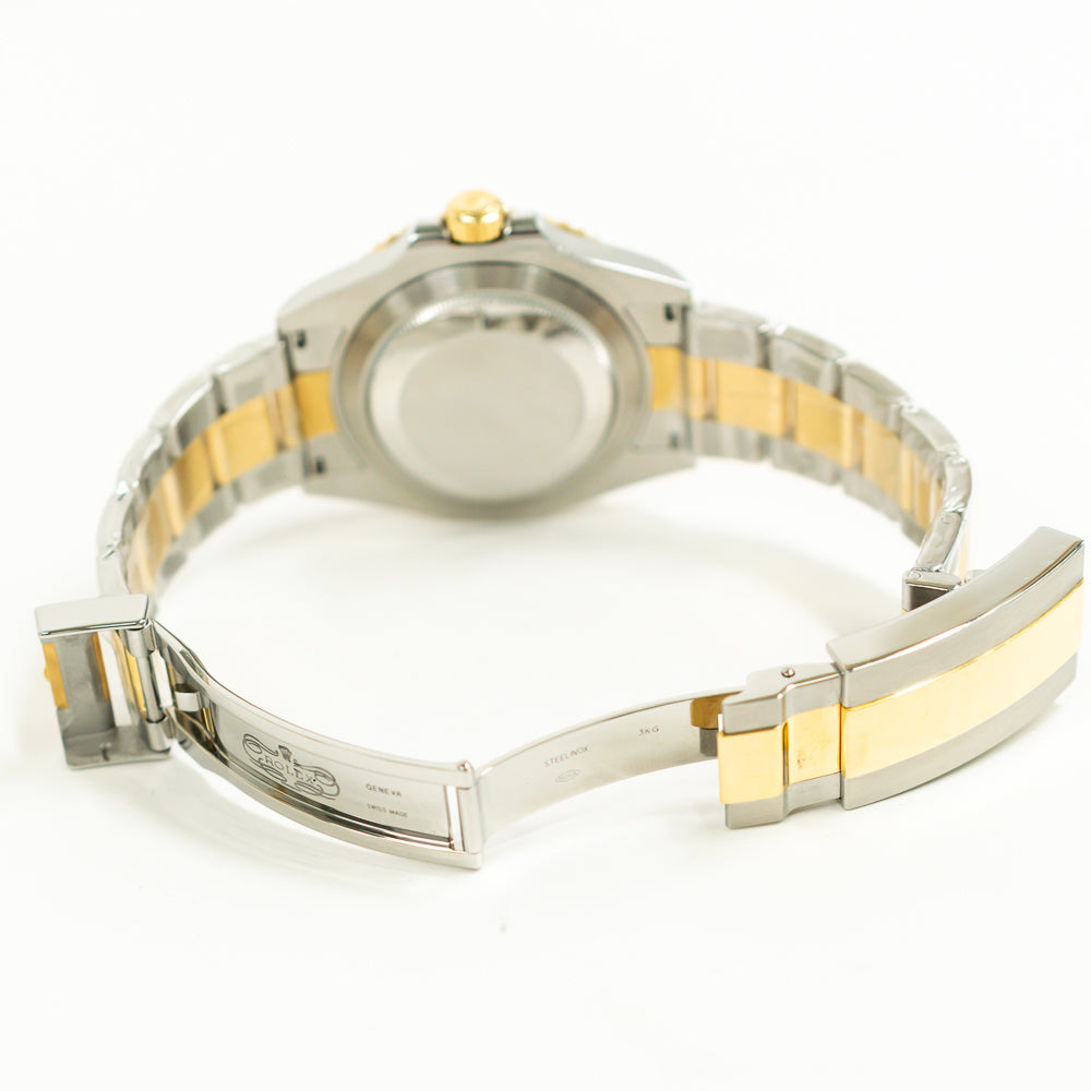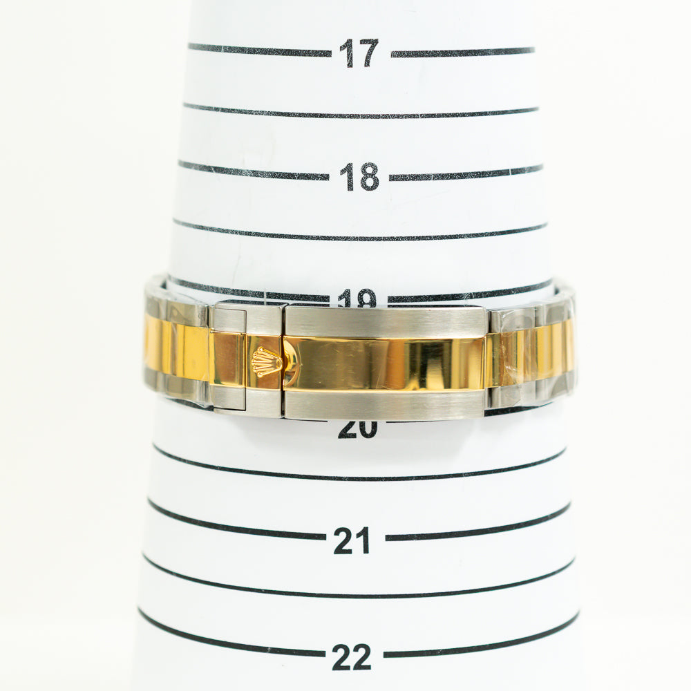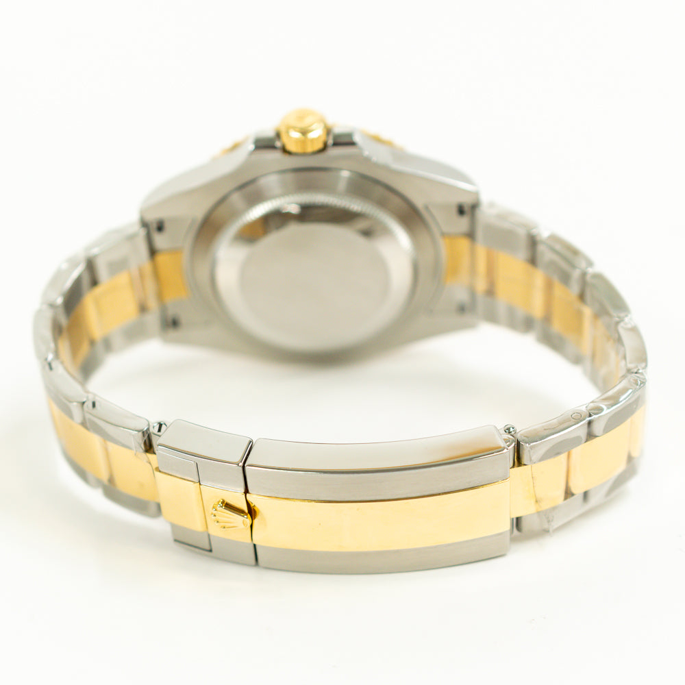 Case: Stainless steel and 18k yellow gold oyster case 41.0 mm in diameter. Pointed crown guards. Rolex logo on the 18k yellow gold crown.