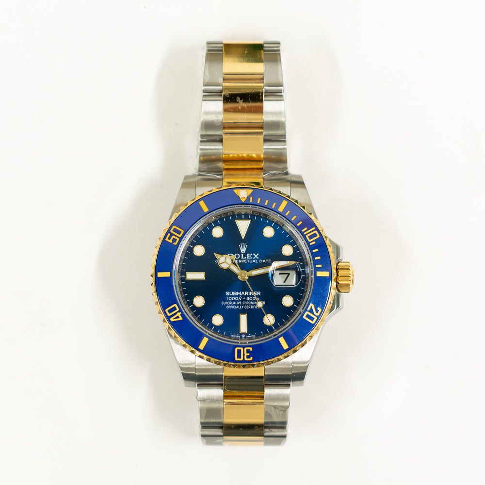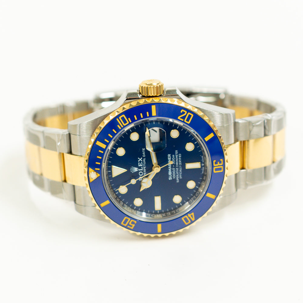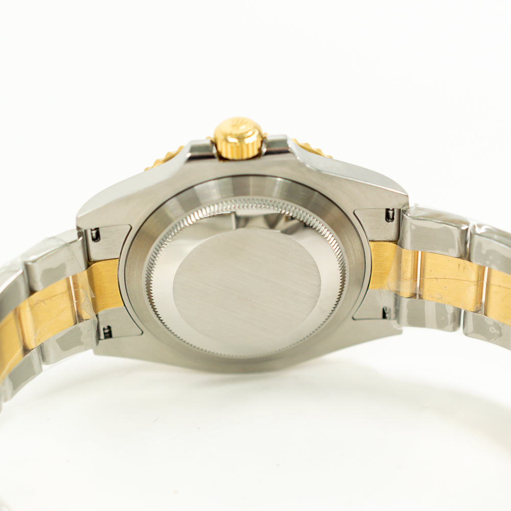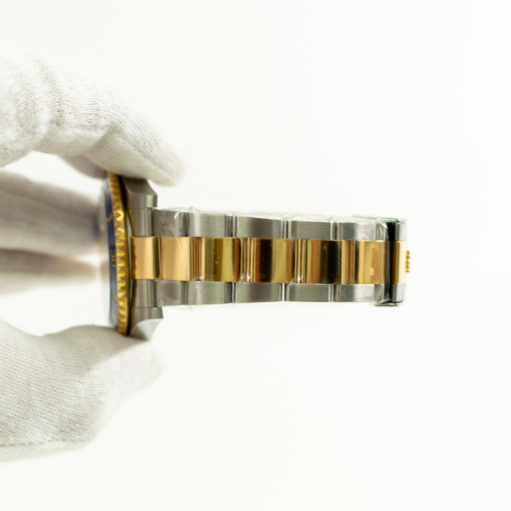 Case: Stainless steel and 18k yellow gold oyster case 41.0 mm in diameter. Pointed crown guards. Rolex logo on the 18k yellow gold crown.