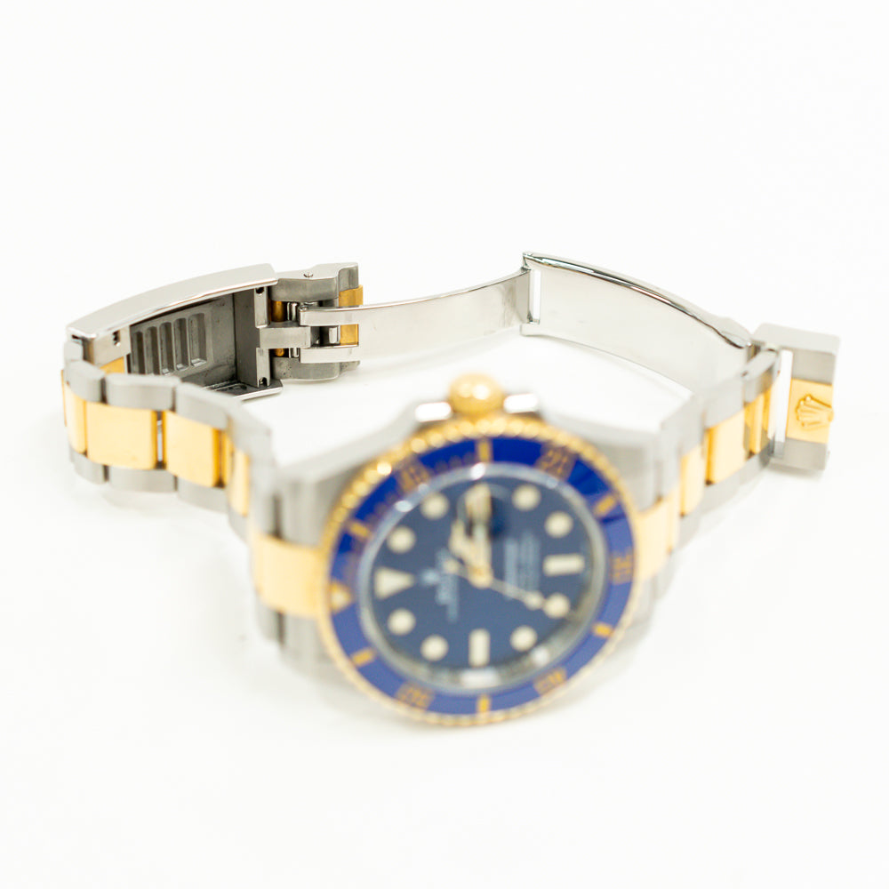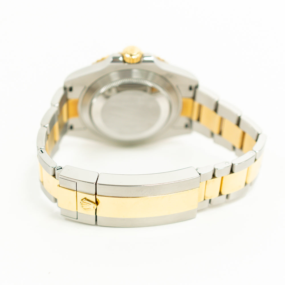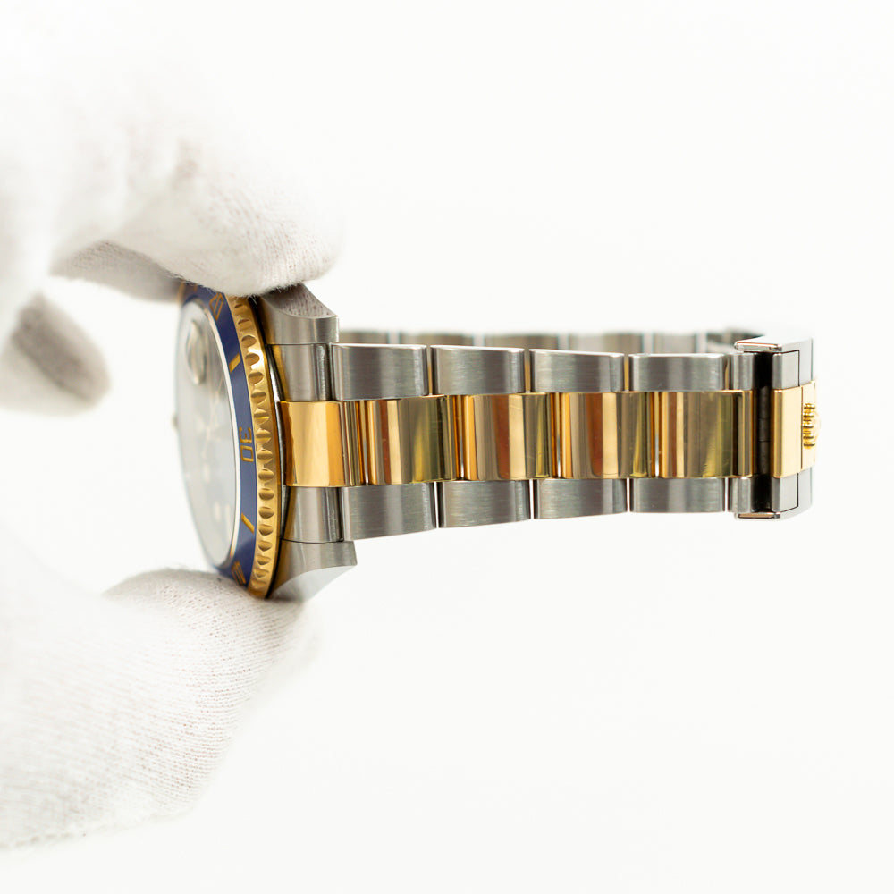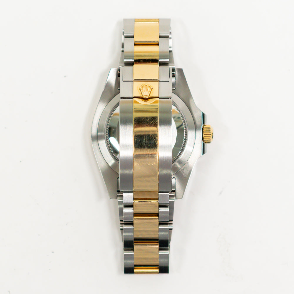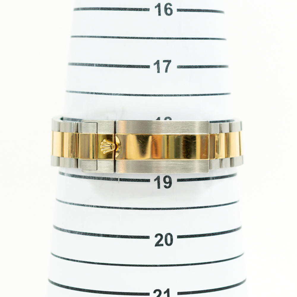 Case: Stainless steel and 18k yellow gold oyster case 41.0 mm in diameter. Pointed crown guards. Rolex logo on the 18k yellow gold crown.