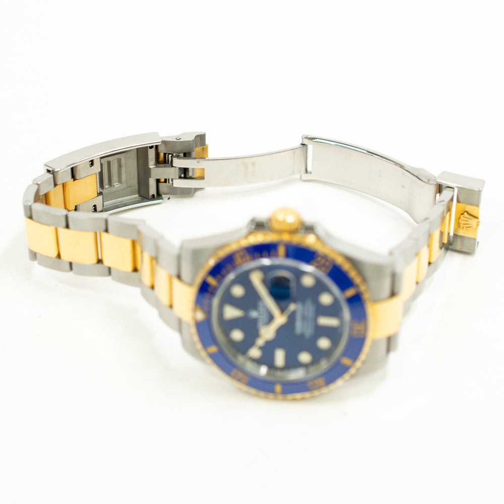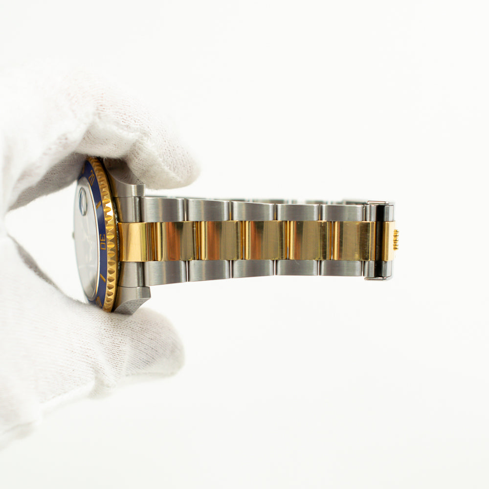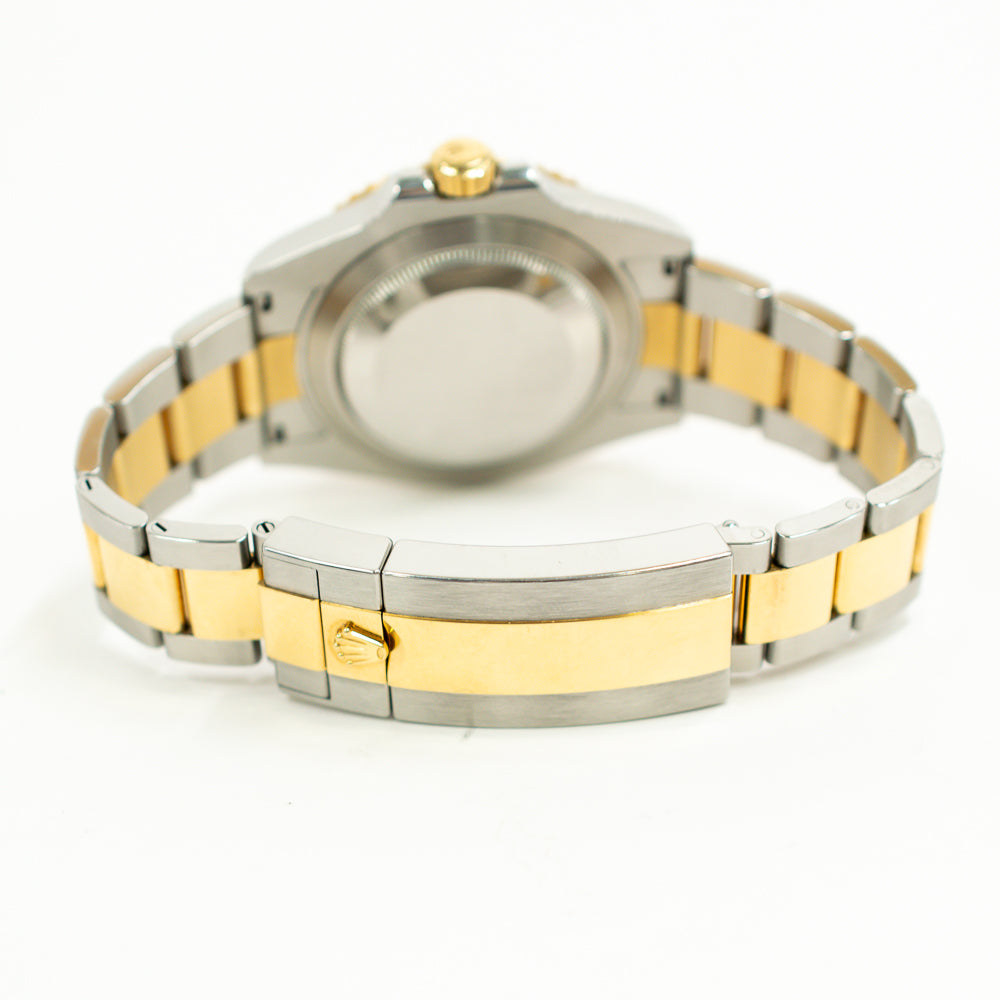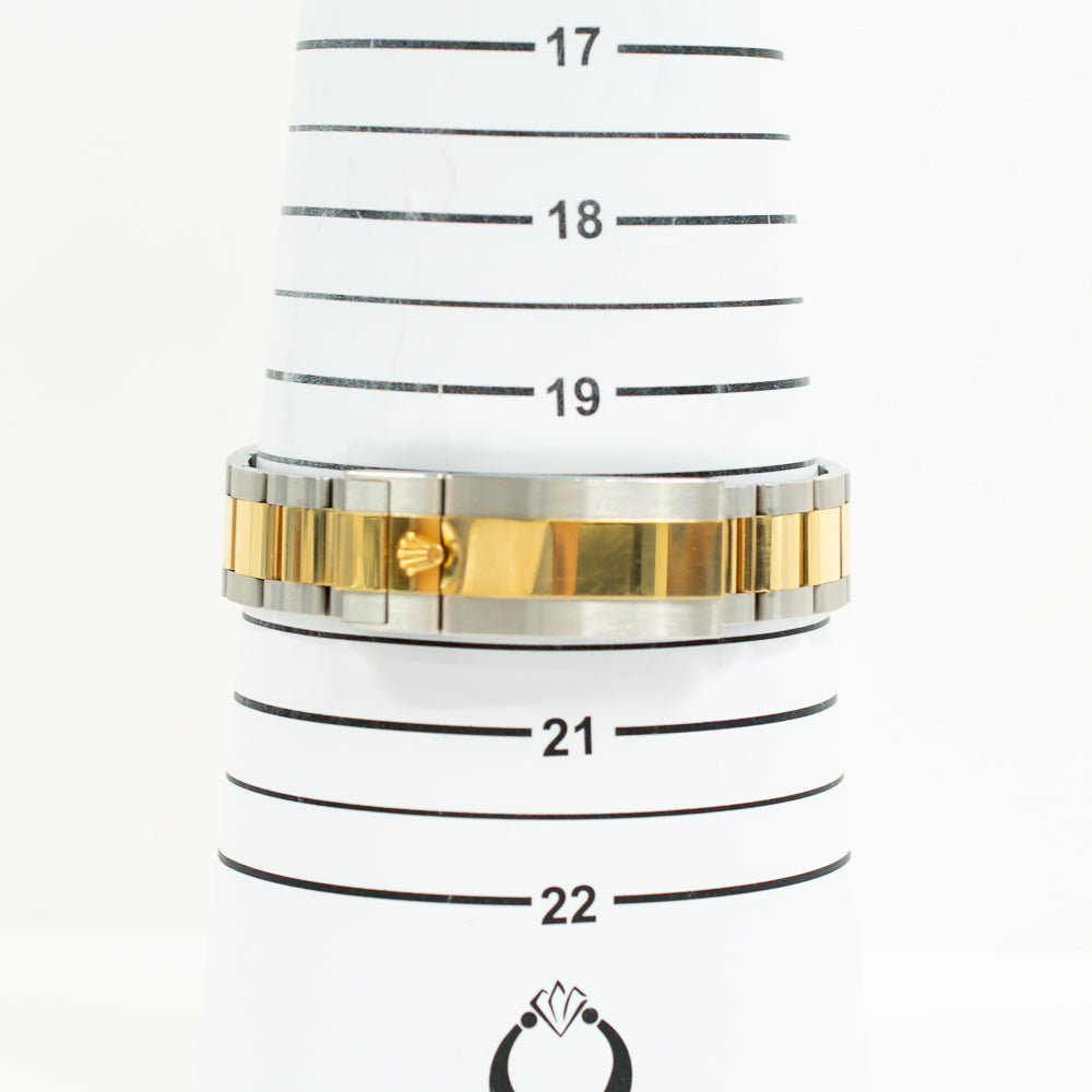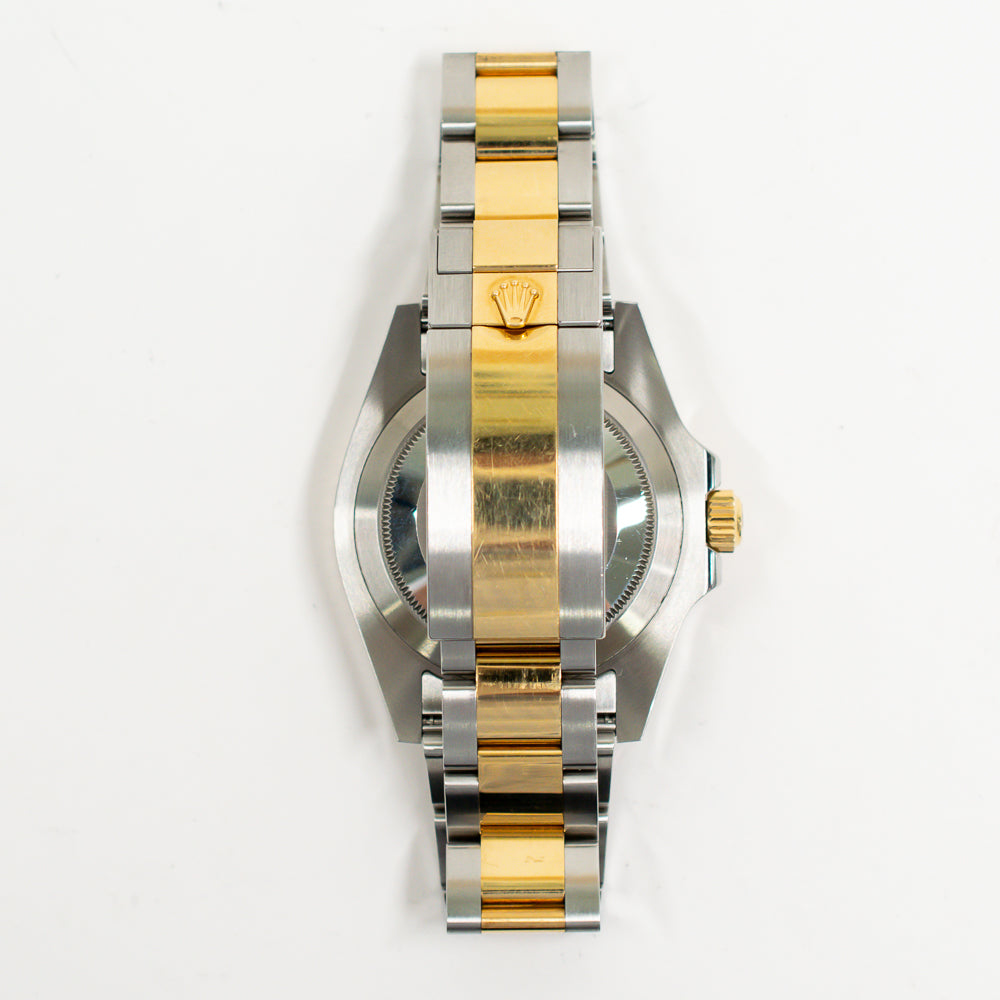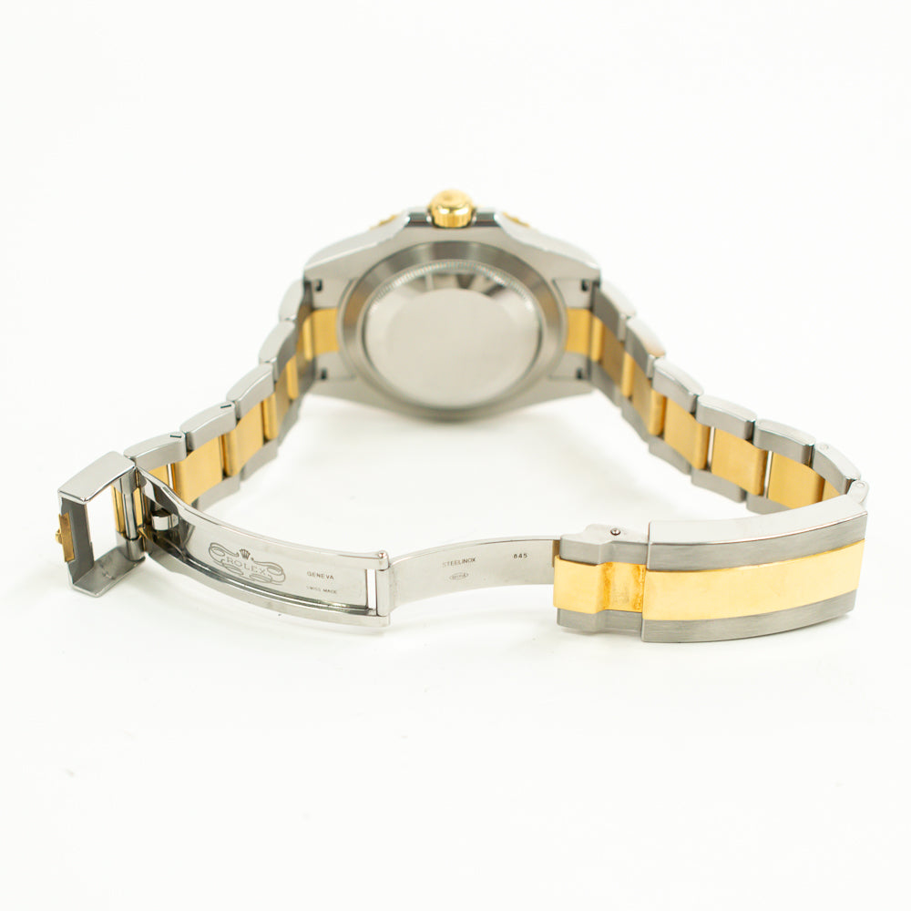 Case: Stainless steel and 18k yellow gold oyster case 41.0 mm in diameter. Pointed crown guards. Rolex logo on the 18k yellow gold crown.