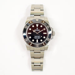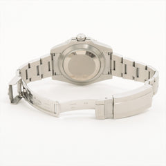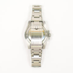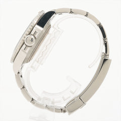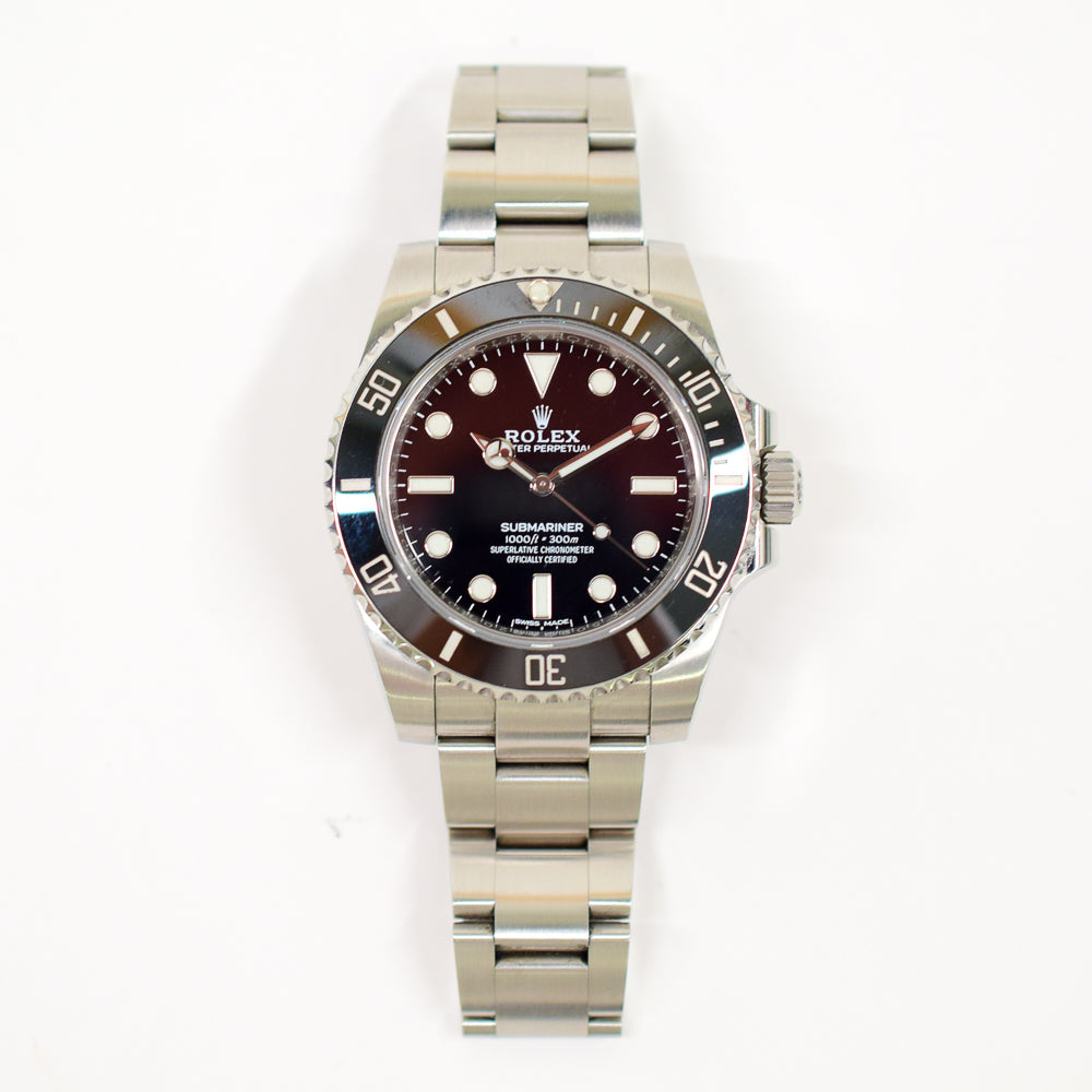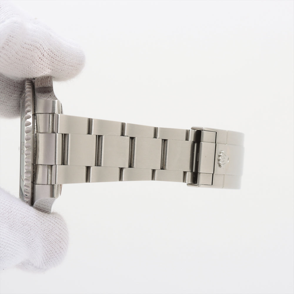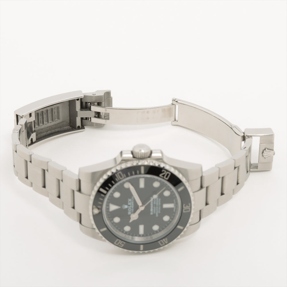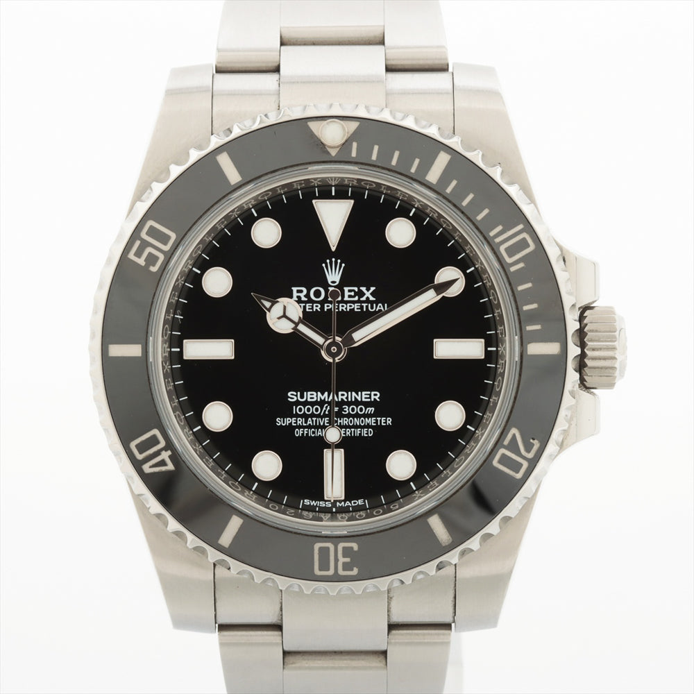 Rolex Submariner 114060 Mens Watch. Features a brushed and polished 904L Oystersteel Stainless Steel case and Oyster bracelet. The Unidirectional rotating bezel has a black Cerachrom ceramic insert with a 60 minute scale that has platinum coated numerals and graduations. The black dial is highly legible, featuring a Chromalight display with long lasting blue luminescence in the hands and hour markers. Dial type is analog. Powered by the Rolex Caliber 3130 self-winding automatic chronometer certified movement which boasts a 48 hour power reserve. Has a scratch resistant sapphire crystal protecting the dial. The case is round and 40mm in diameter. The crown screws down using a Triplock triple waterproofness system. The case back is screwed in. The buckle is a folding Oysterlock safety clasp with Rolex Glidelock extension system. Waterproof to 300 meters / 1000 feet. Functions: hours, minutes, seconds.
